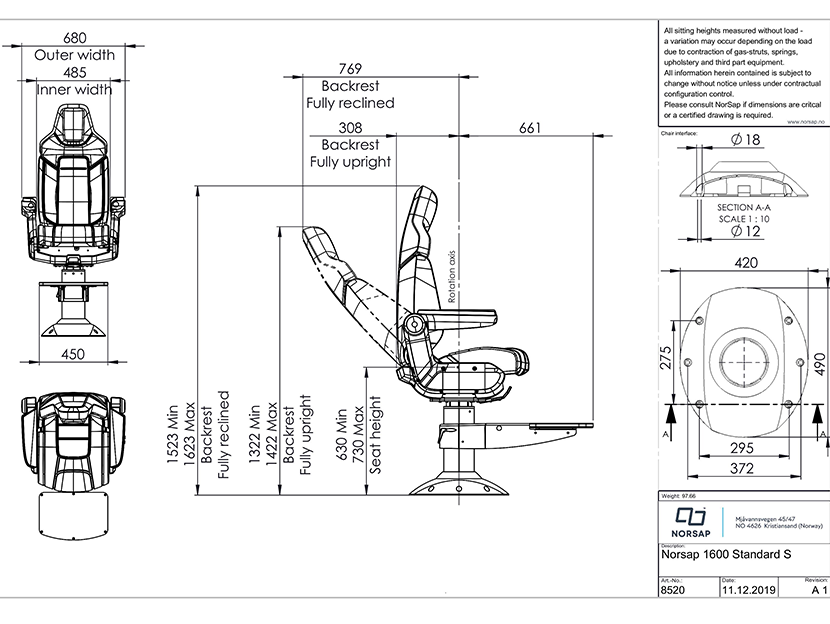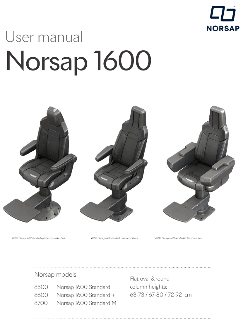 扶手加裝附件: 支持 更多亮點: The Norsap 1600 Standard is a robust and comfortable range – perfectly suited for demanding environments, compact in size and easy to install.