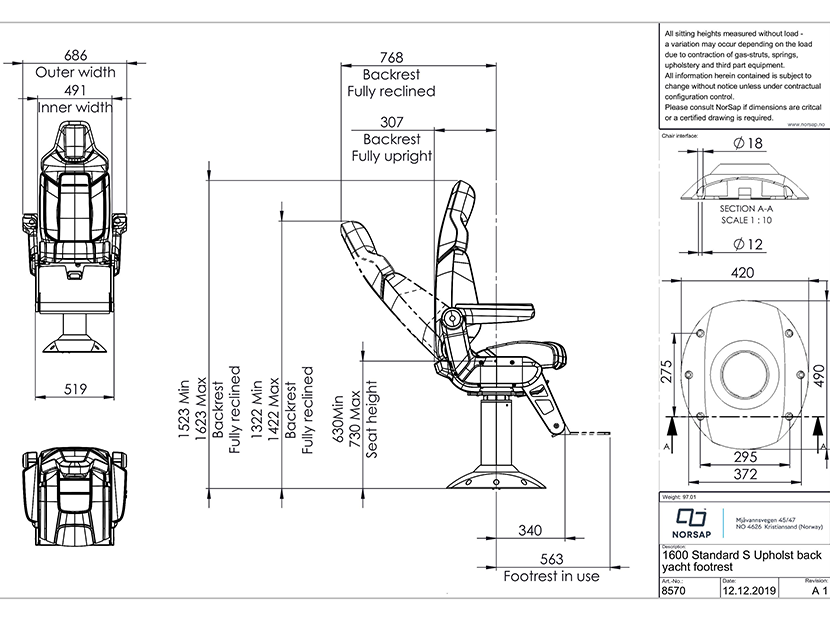 扶手加裝附件: 支持 更多亮點: The Norsap 1600 Standard is a robust and comfortable range – perfectly suited for demanding environments, compact in size and easy to install.